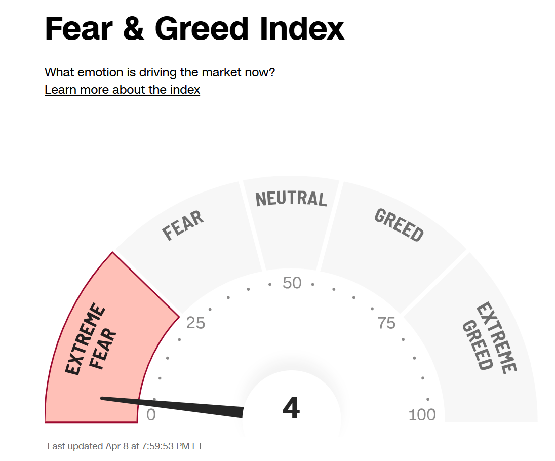 CNN 공포탐욕지수가 10 이하로 떨어진 시기는 단 3번뿐이었습니다. - 2008년: 금융 시스템 붕괴 - 2020년: 외부 전염병 충격 - 2025년: 정책·금리·지정학 복합 위기 2025년 4월 9일 현재, 지수는 다시 극단적 공포(4) 구간에 진입했으며, 이는 단기적 매수 시점을 암시할 수 있는 동시에, 구조적 조정 신호일 수도 있습니다. 과거 사례가 말해주듯, 공포는 곧 기회일 수 있습니다. 그러나 이번에는 리스크가 다층적이므로 빠른 반등보다는 점진적 포트폴리오 재조정이 중요합니다. 지금은 투자 원칙을 점검하고, 방어 자산 중심으로 분산 투자 전략을 강화할 시점입니다.